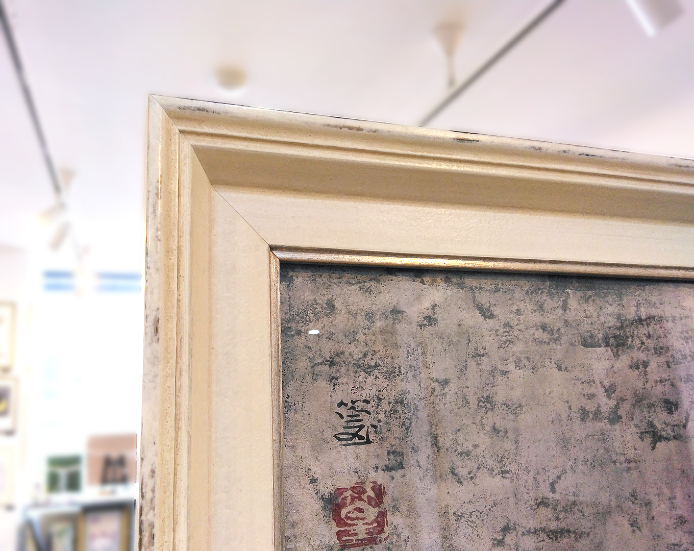 そこで、こちらのアンティーク感のある白いフレームを選択しました。