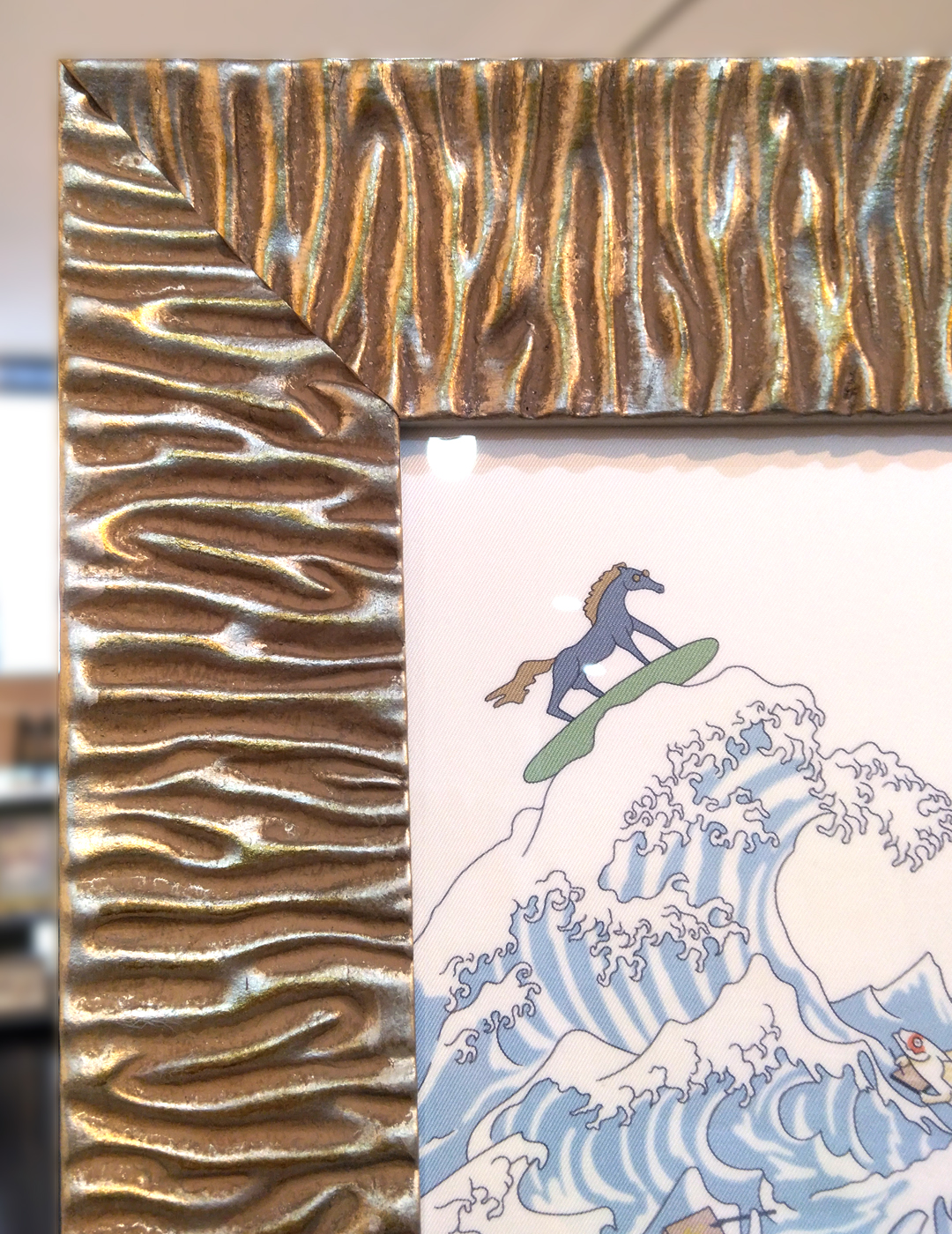 渋さや重さ、迫力のある雰囲気の額装に大変似合うフレームですが、